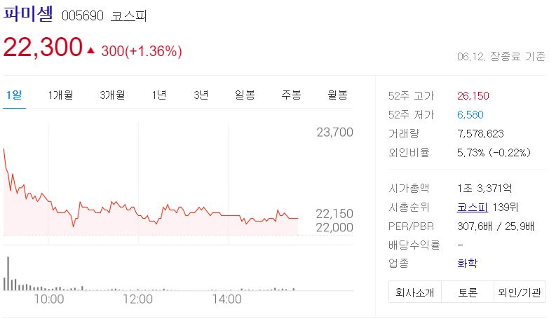 5월달만해도 1만원대 밑으로 주가가 형성되었었지만 이 렘데시비르의 원료로 유명해지며 현재는 22,300원으로 주식투자자들의 기대감을 반영하고 있는 것 같습니다.