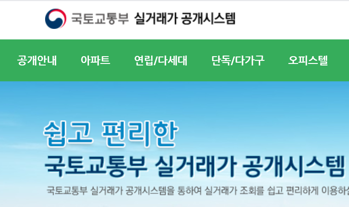 두번째로 소개해드릴 것은 국토교통부 실거래가 공개시스템입니다. 국토부 실거래가 조회를 검색해도 되지만 국토부 실거래가 홈페이지(http://rt.molit.go.kr/) 로 들어가시면 좀 더 편하게 확인하실수 있습니다.