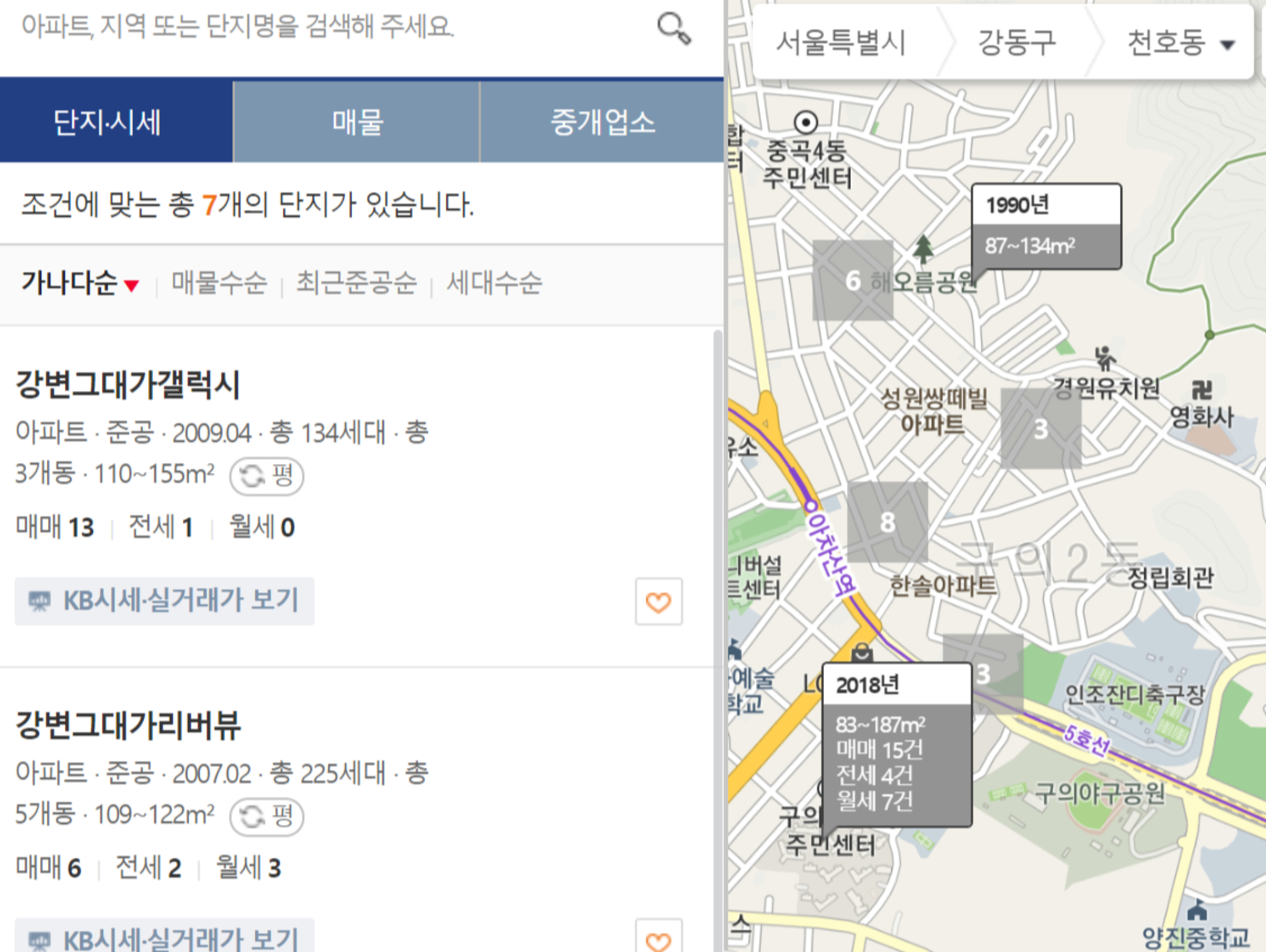 저같은 경우 서울의 천호동 주변 아파트 시세를 봤는데 매매가가 한 8~10억정도 하는 것 같고 전세는 6억정도 하는 걸로 나오네요.