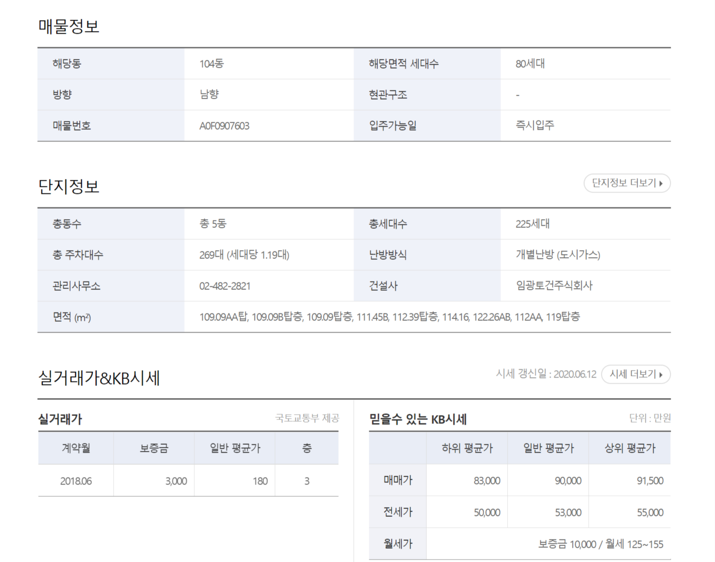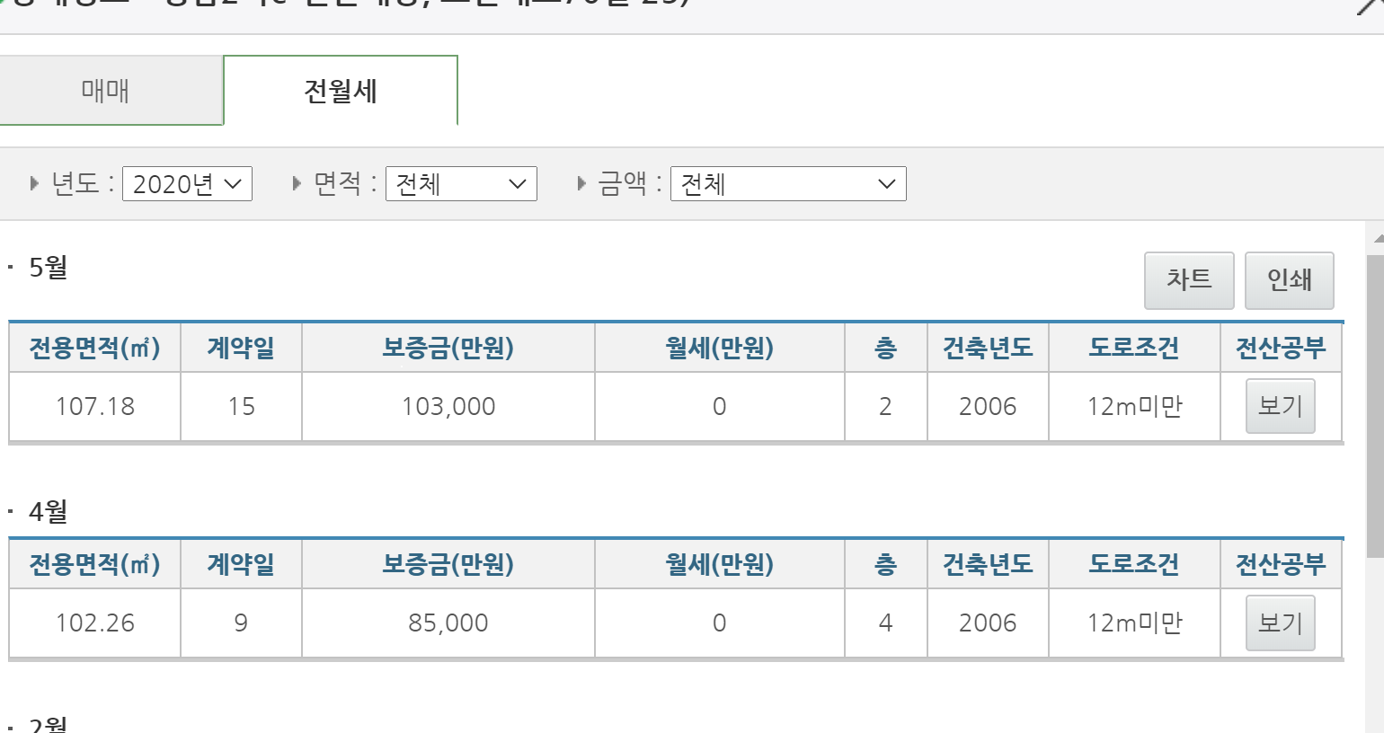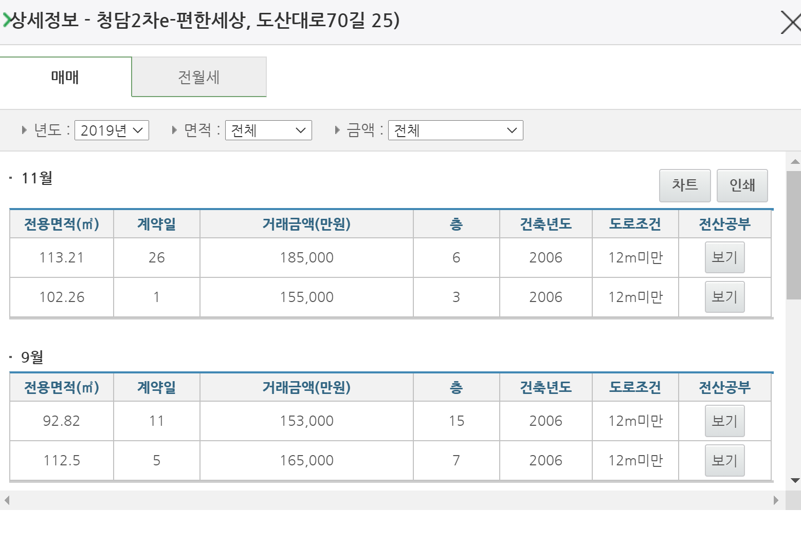 정말 평수별로 한눈에 아파트 실거래가 조회를 할 수 있어서 보기가 편한 것 같습니다.