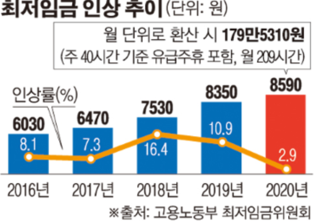 그리고 코로나19로 인한 경제여파로 2021년 최저임금의 추이가 정말 자영업자들의 마음을 졸이게 만들 것 같습니다.