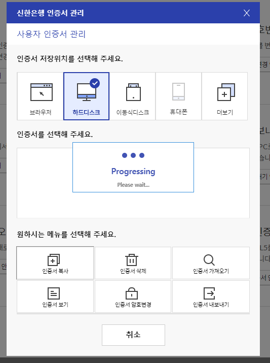 일단 공인인증서를 usb로 옮기는 방법은 내가 사용하는 인터넷뱅킹의 공인인증센터를 사용하는 것인데요.