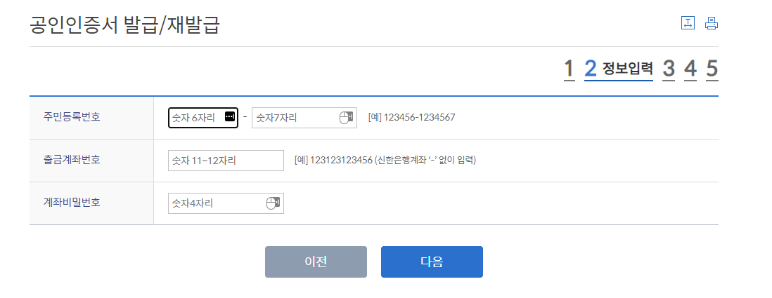 3. 주민등록번호, 계좌번호, 계좌 비빌번호를 입력한다