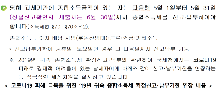 종합소득세 신고기간 및 코로나19로 인한 신고기간 및 납부기간 연장일자