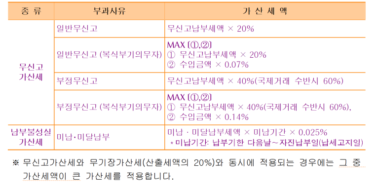 종합소득세 신고기간에 신고를 하지 않았을 경우 각종 세액공제와 감면을 받을 수 없고 무거운 가산세를 부담하게 됩니다.