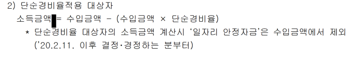 * 단순경비율 대상자의 소득금액 계산시 ‘일자리 안정자금’은 수입금액에서 제외(’20.2.11. 이후 결정・경정하는 분부터)