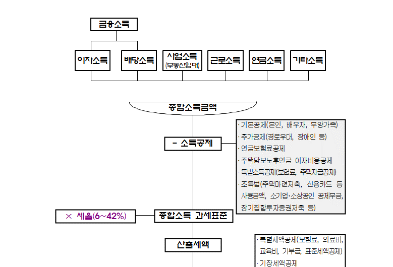 여기서 종합소득이란 이자, 배당금, 사업(임대료), 근로, 연금, 기타소득 등에 있습니다.