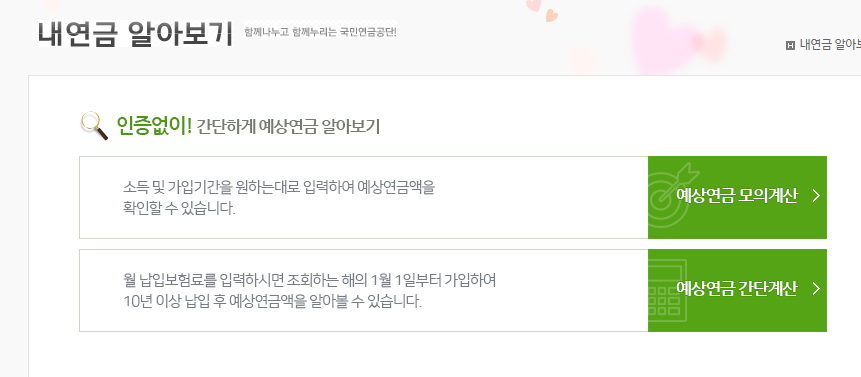 과연 내가 국민연금 받을 나이가 되어서 내 국민연금 수령액이 얼마인지 알아보고 싶었습니다.