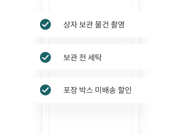 내 물건이 잘 있는지 상자보관 물건촬영을 할 수도 있고 의류의 경우 보관 하기 전에 세탁도 가능합니다.