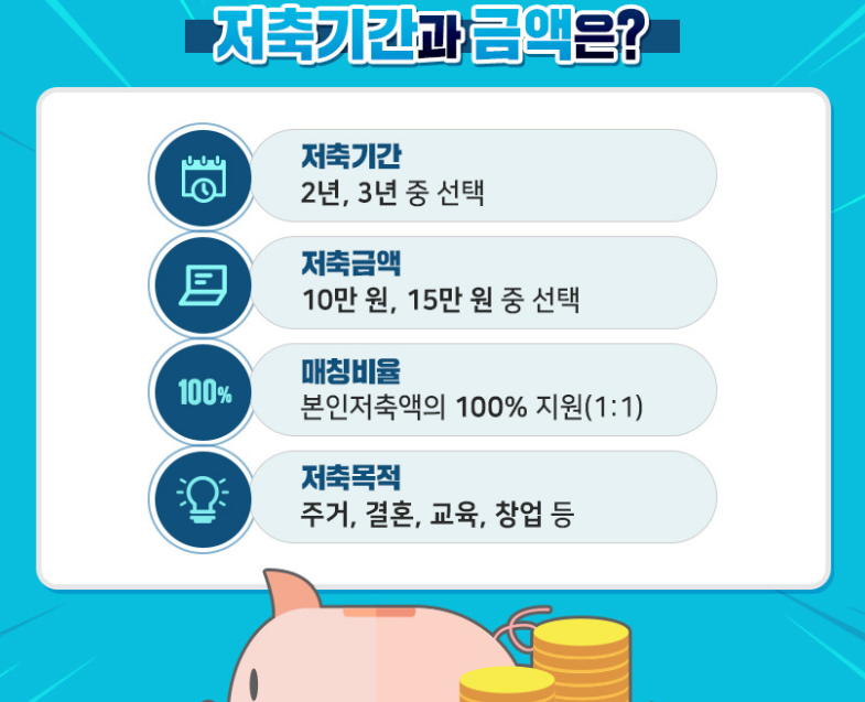 저축액이 2배로! 근로하는 청년이 매달 10만원~15만원씩 2~3년을 꾸준히 저축하게되면