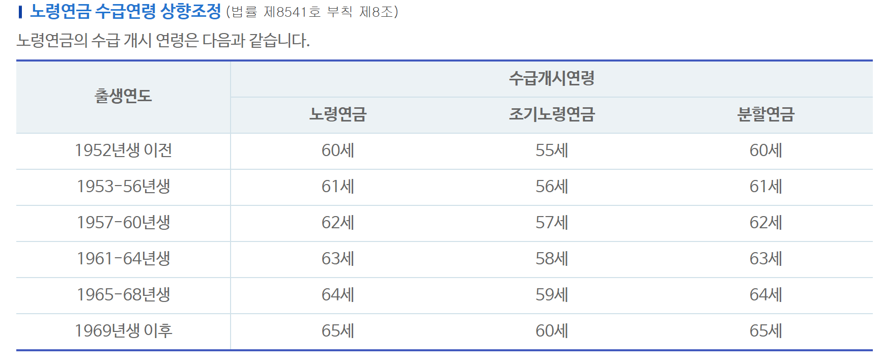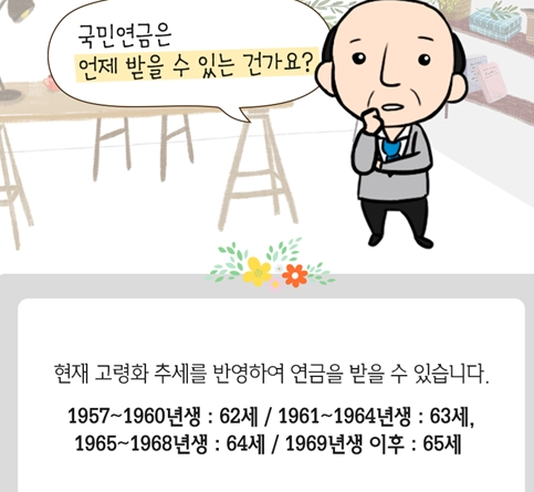 하지만 출생연도에 따라 60세부터가 아닌 65세일수도 있으니 수령연령을 잘 확인하셔야 됩니다.