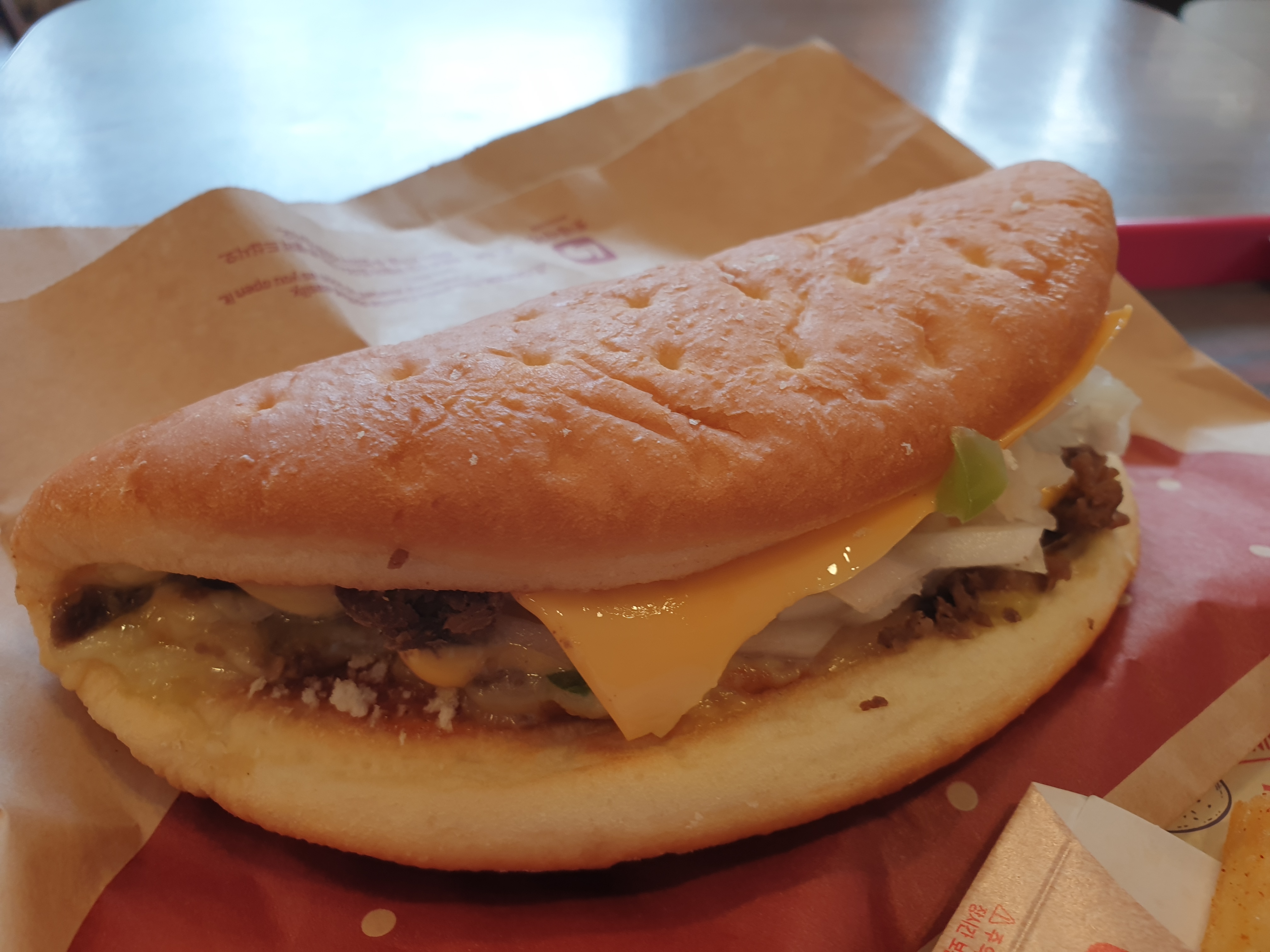 단품의 금액은 비프와 핫치킨 모두 5700원이고 세트는 7500원입니다. 근데 제가 먹어본 결과 패티로 넣어주는 것이 아니라 잘게 잘린 고기를 넣어줬습니다. 일반 패티는 아니라는 거죠.