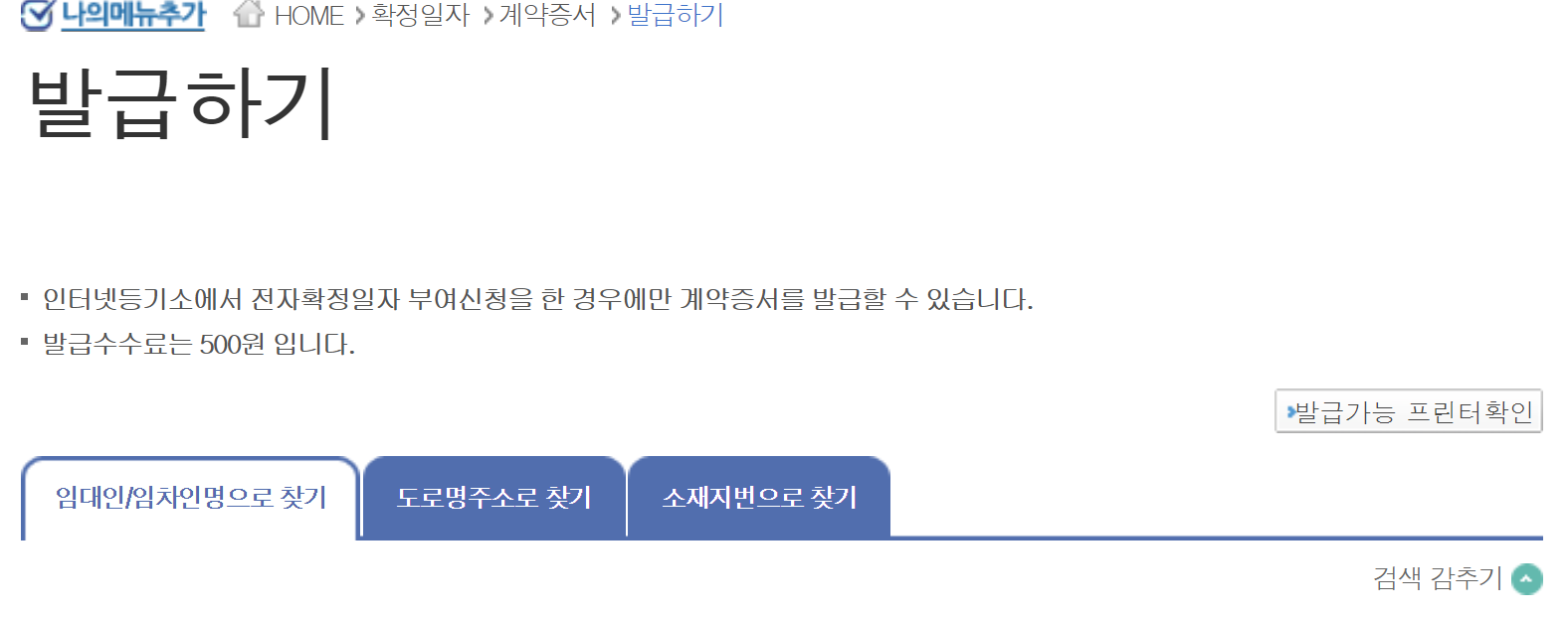 온라인으로 확정일자를 받는 법은 발급받을때 500원의 수수료가 발생되니 이 점 유의하시길 바라겠습니다^^