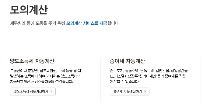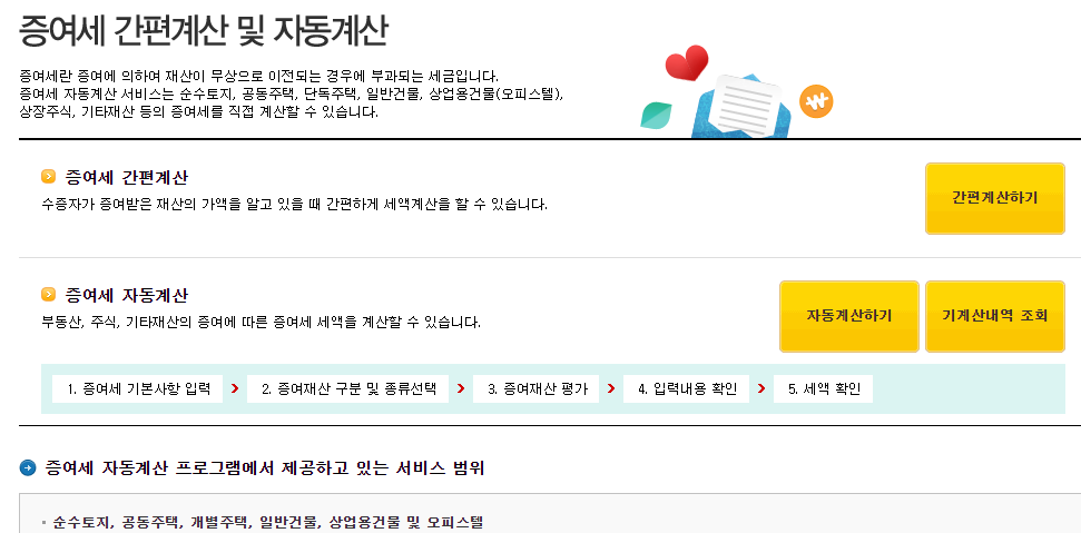 또 자동계산을 통해 부동산, 주식 기타 재산의 증여에 따른 증여세 세액을 계산할 수 있으니 증여세 면제 한도액에 맞춰서 증여를 생각할 수 있을 것 같습니다.