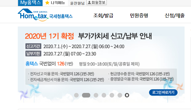 1. 홈텍스 홈페이지에 접속한다(https://www.hometax.go.kr/).