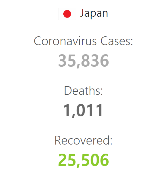 일본은 현재 전세계 코로나 확진자 현황 랭크가 54위로 총 확진자 수 3만5천명이고, 하루에 1천명이 넘는 코로나