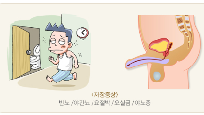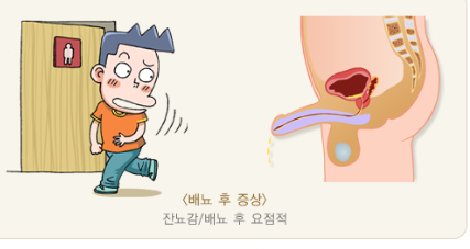 그래서 잔뇨감, 빈뇨, 사정장애와 같이 성기능 장애 등과 같은 증상을 보입니다.