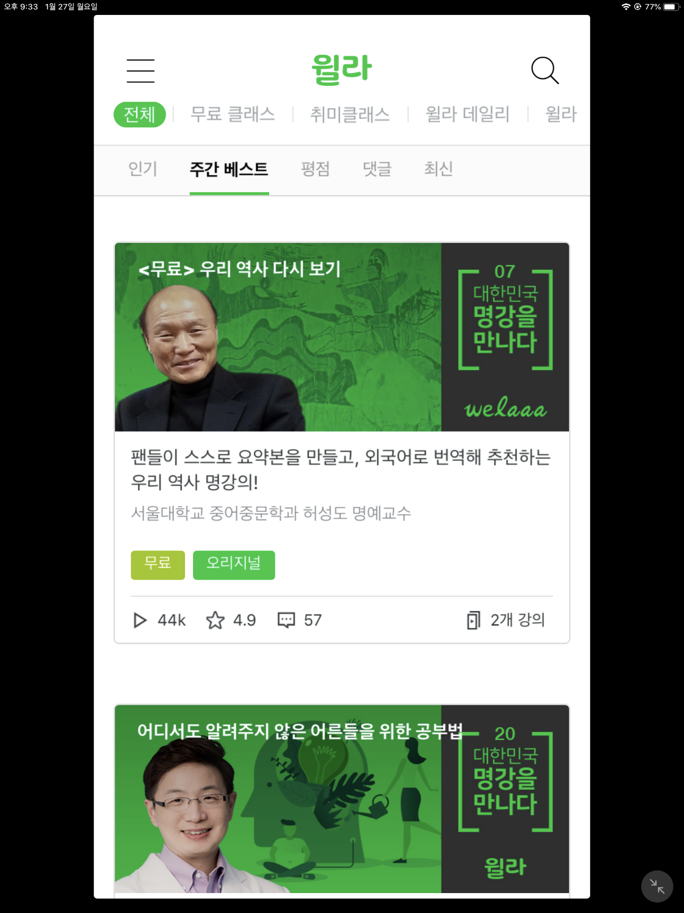 오디오 북뿐만 아니라 클래스에는 정말 도움이 될만한 강의가 많아요. 저도 시간 날 때마다 보려고 하는 내용들도 많고 오디오북 말고도 다양하게 들을 수 있는 내용이 많다는 것은 계속해서 지식을 쌓기에는 충분하다 그리고 매 월 업데이트를 하고 있고요