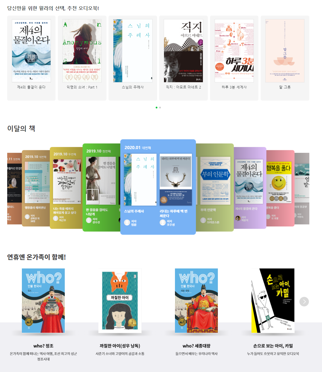 충분히 소비할 콘텐츠나 책들이 준비되어 있습니다. 하지만 신작들이나 대다수의 책들이 전자책으로는 나와있지만 오디오북으로는 나와있지 않죠