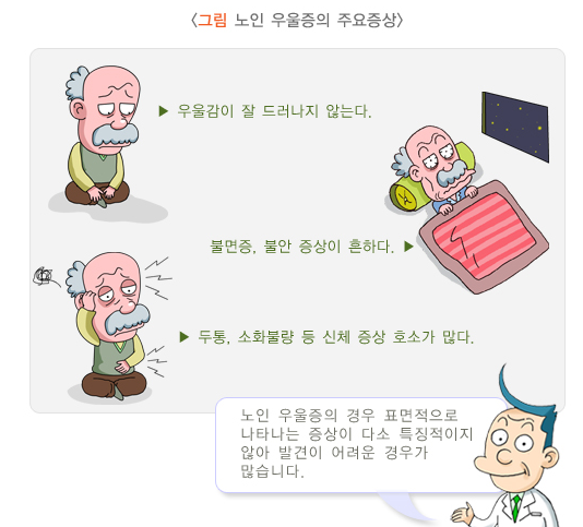 노인 우울증의 경우 건강에 대한 걱정과 함께 신체증상의 호소가 많습니다. 또 건망증과 같이 인지 기능이 감퇴가 되는 경우도 노인 우울증 증상 중 하나인데요.