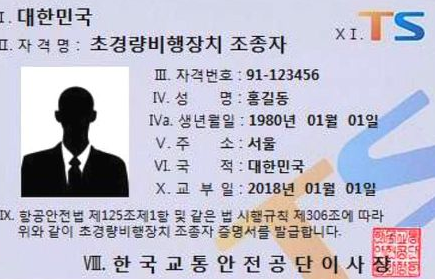 드론자격증은 한국교통안전공단에서 시행하는 국가자격증으로 정식명칭은 초경량 비행장치 자격증입니다.
