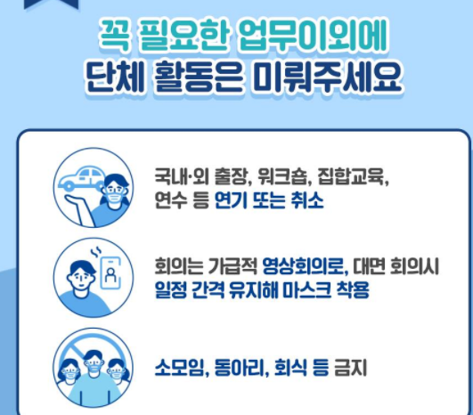 2. 의료기관 방문, 생필품 구매, 출퇴근 외에는 외부활동 연기하거나 취소하기