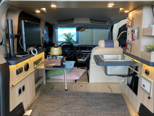보통 트럭이나 미니밴 등을 개조하여 내부에서 숙식이 가능하게 만들어진 캠핑카죠.