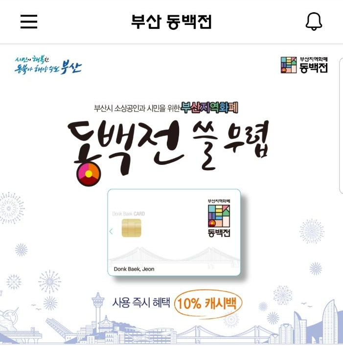 부산 동백전, 긁을수록 돈 버는 캐시백 10%의 지역화폐 카드!