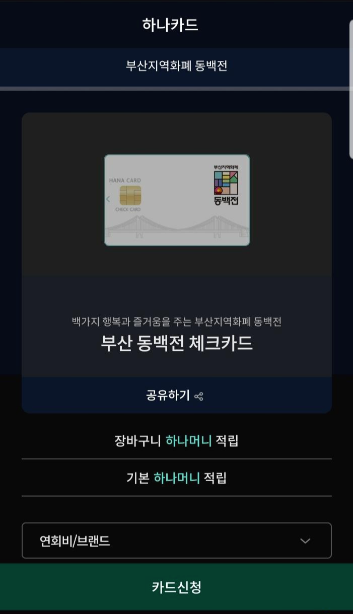 하나은행 혹은 부산은행 지점으로 가시면 창구직원의 안내에 따라 플레이스토어, 앱스토어를 통해 동백전 애플리케이션을 다운로드하고 가입하여 카드를 신청할 수 있습니다.