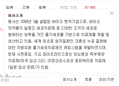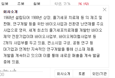 줄기세포 관련으로 지난 미국과 이탈리아의 바이오 회사들을 차례로 인수하였으며, 줄기세포 치료제 개발의 선두주자라고 보시면 될 것 같습니다.