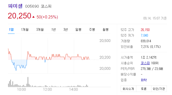 파미셀은 잘 아시다시피 코로나 관련주로도 유명한데요. 줄기세포 관련 치료제 전문인만큼 파미셀은 첨생법 관련주, 코로나 관련주로 관심있게 지켜보셔야 할 바이오 회사 중 하나 인 것 같습니다.