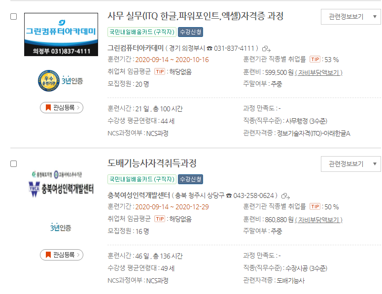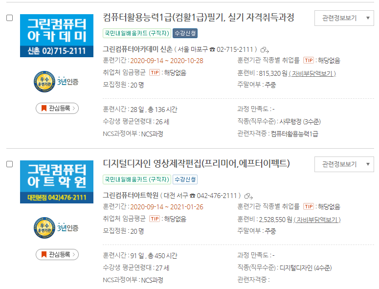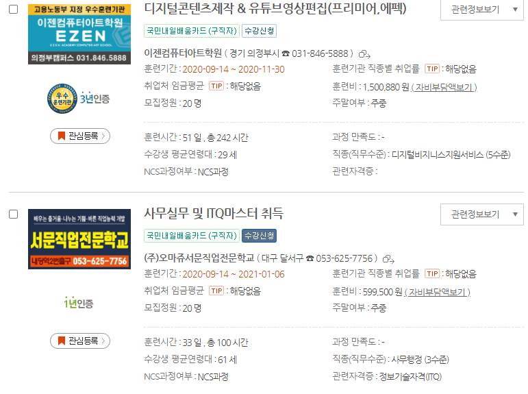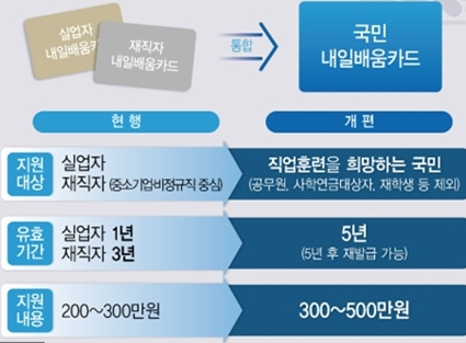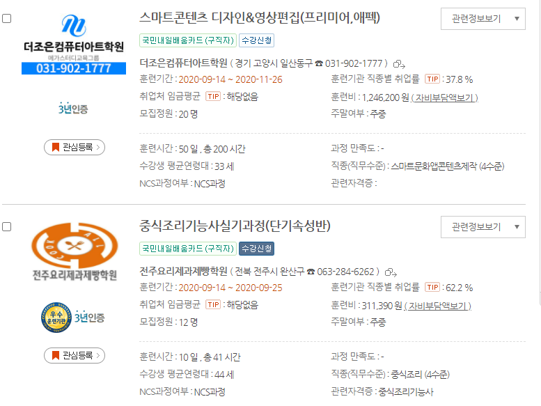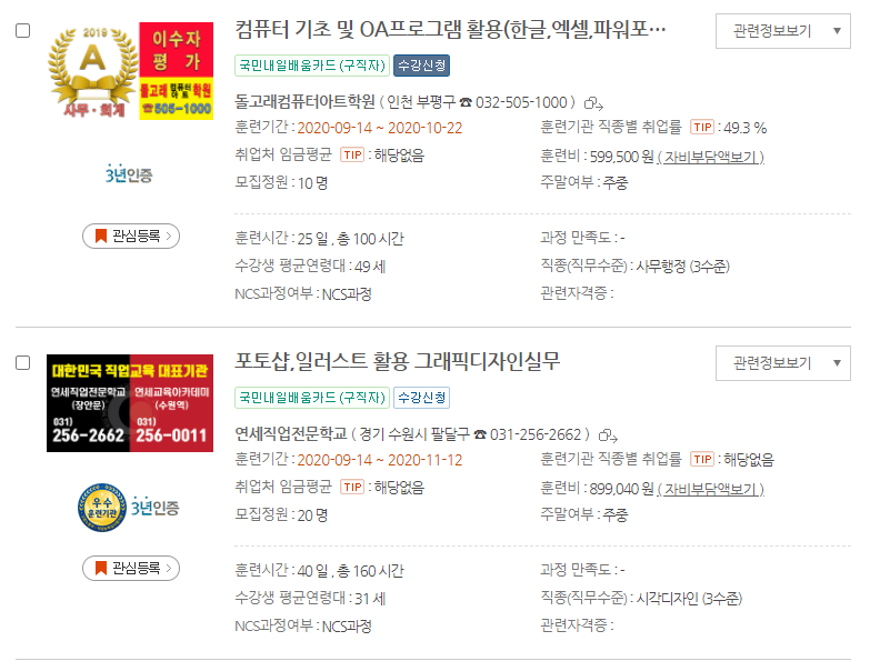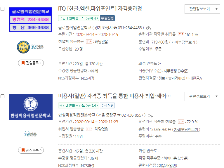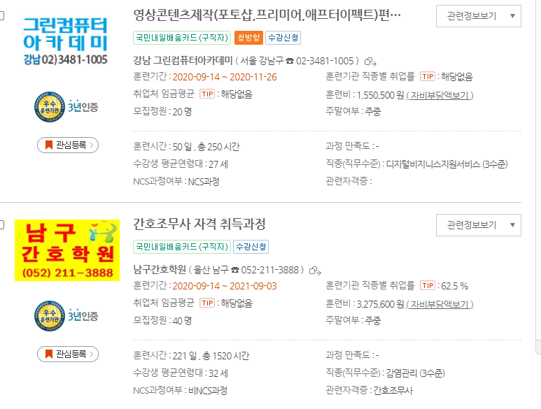 20년도 이전에는 실업자와 재직자로 나눠져서 운영되었지만 이제 국민내일배움카드라고 해서 실업자와 재직자 상관없이