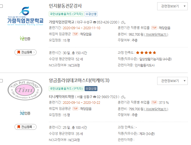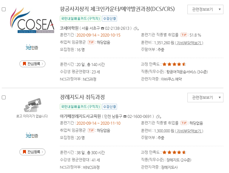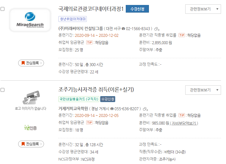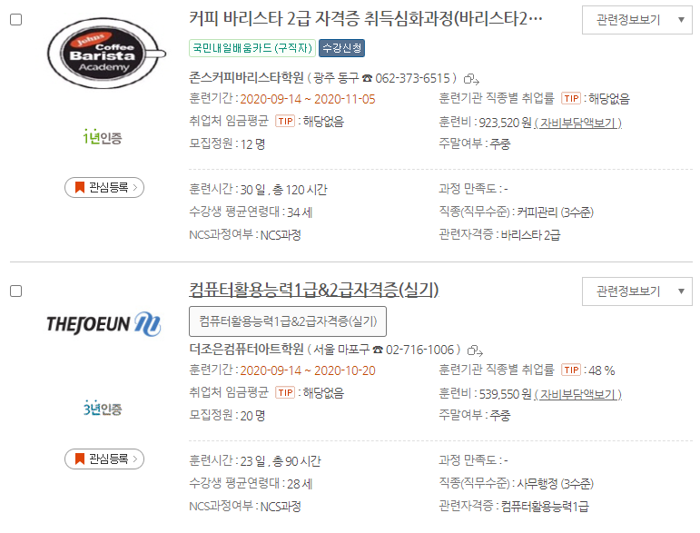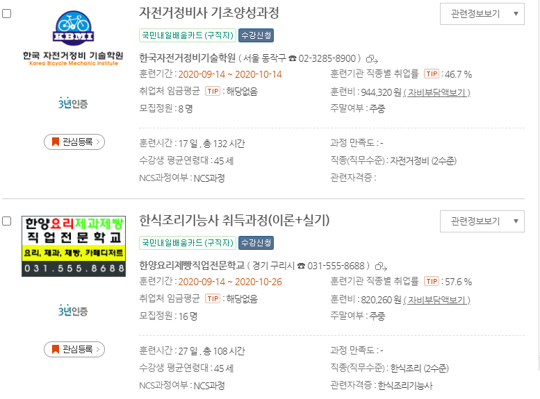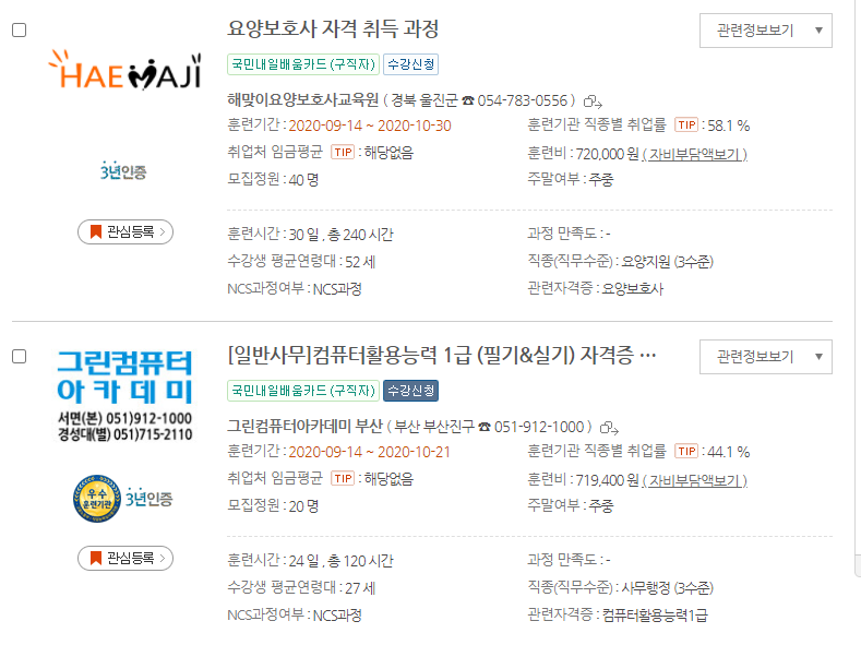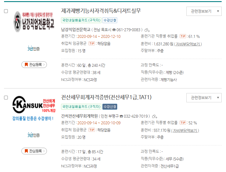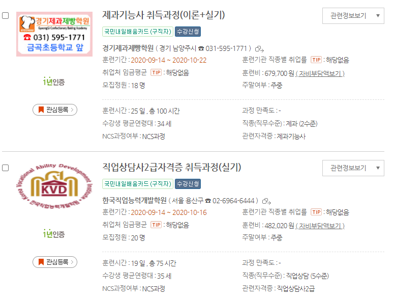 20년도 이전에는 실업자와 재직자로 나눠져서 운영되었지만 이제 국민내일배움카드라고 해서 실업자와 재직자 상관없이