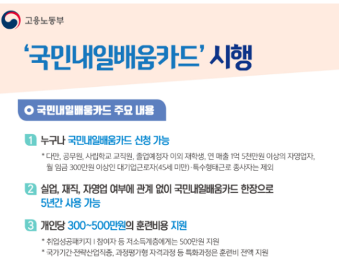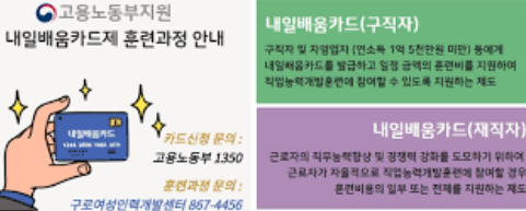 내일배움카드는 국민내일배움카드라고 해서 직업능력개발을 위해 만들어진 국민들을 위한 혜택이라고 보시면 될 것 같습니다.