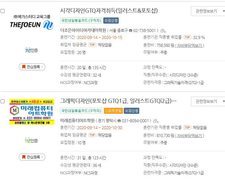 정말 다양한 분야를 국비지원을 통해 배울 수 있는데요. 수강하기 직전에 hrd.net의 직업훈련포털에 들어가서 수강평을 살펴보시는 것이 큰 도움이 될 것 같습니다.