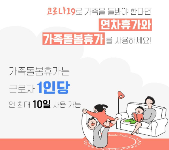 가족돌봄 휴가 신청방법은 현재 정부와 고용노동부에서 보다 적극적으로 활용할것을 당부하고 있는데요.