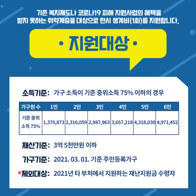 4차재난지원금 한시생계지원대상을 알아봅시다.