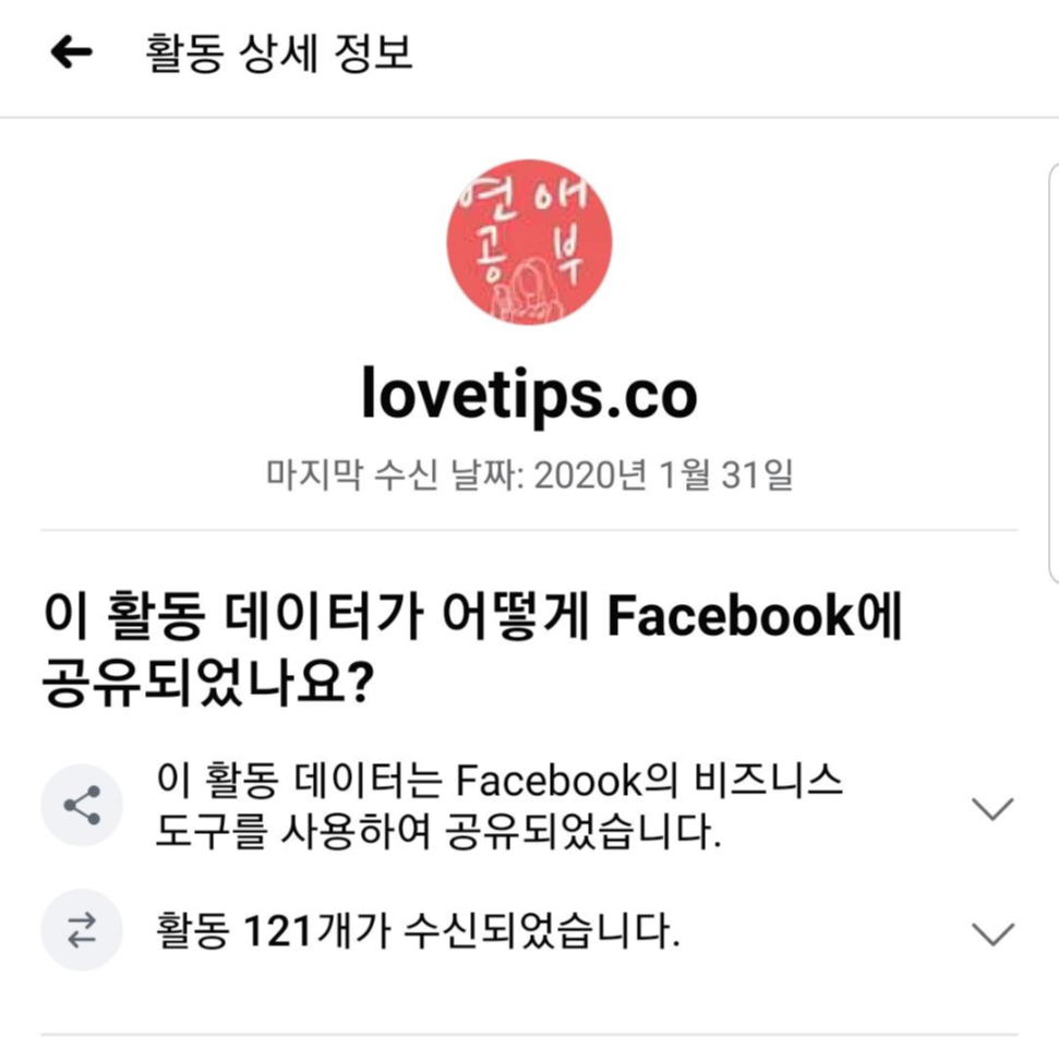 제가 좀 소름 돋았던 것은 그냥 예전에 흘러가듯 페이스북 게시글을 눌렀던 것일 텐데 제가 잘모르는 한 사이트가 제 정보를 121개를 수신하였다는 것이 충격이었습니다. 이 외에도 제가 주로 방문하지 않는 다른 사이트 또한 제 정보를 많이 가져갔습니다.