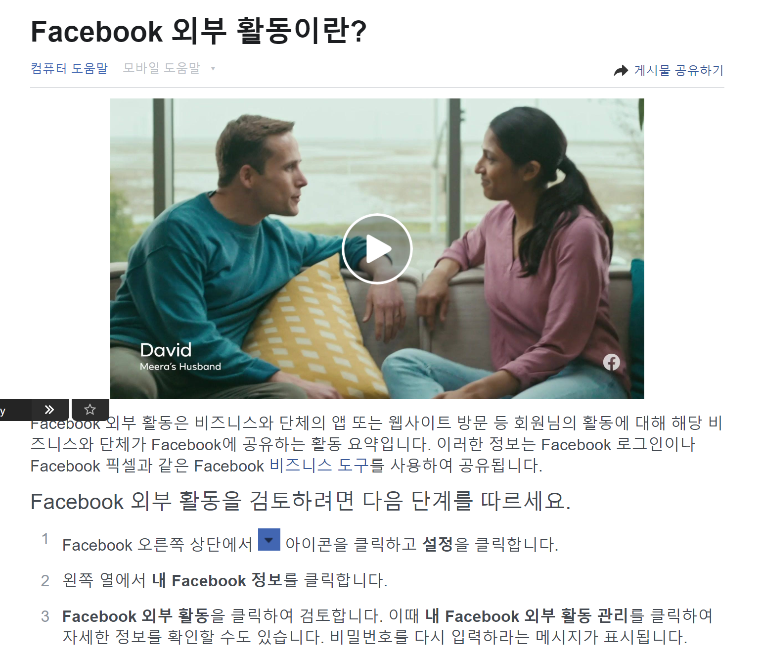 2 내 Facebook 외부 활동에 들어가기