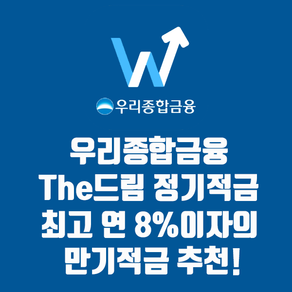 이렇듯 3% 적금 조차 찾기 힘든 현실에서 지난 2월 하나은행 연 5% 적금에 이어 우리은행 자회사인 우리종합금융(우리금융지주) 또한 이번에 6개월 만기 최고 연 8%인 The드림 정기적금 상품을 출시한다고 밝혔습니다.