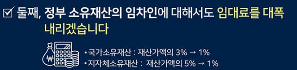- 중앙정부 소유재산 하에 있는 임차인들의 경우 중앙정부 관할 임차인들 임대요율을 재산가액의 3%->1%까지 인하됩니다.