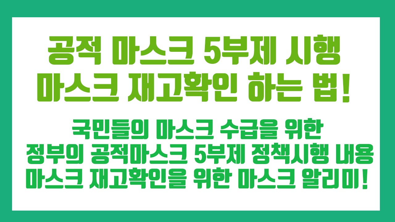 하지만 전국적인 공급량에는 턱없이 부족하여 공적마스크 5부제를 시행하고 있는데요 이 공적 마스크 5부제는 어떤 제도 인지 설명드리고, 코로나 알리미 앱을 만들었던 고려대학교 재학생 5명이 이 공적 마스크 재고현황 알리미 사이트 또한 만들었으니 공적 마스크 재고 확인을 위한 정보 또한 소개해 드리겠습니다.