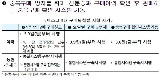 - 1주당 1인 2매로 마스크 구매 제한