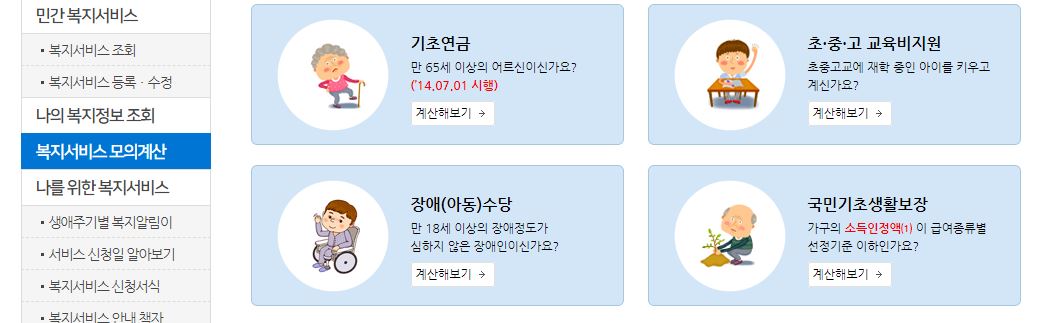 건강보험료를 기준으로 한다고 말씀드렸지만 조금 더 정확하게 내 소득분위를 알아보고 싶으신 분이라면 복지로 홈페이지에 있는 복지서비스 모의계산을 통하여 대략적으로 확인할 수가 있습니다.