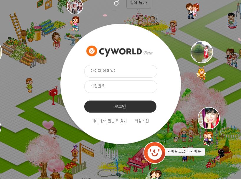3. 로그인이 되지 않았겠지만 밑에 있는 싸이월드 싸이홈(동그란 버튼)을 누른다