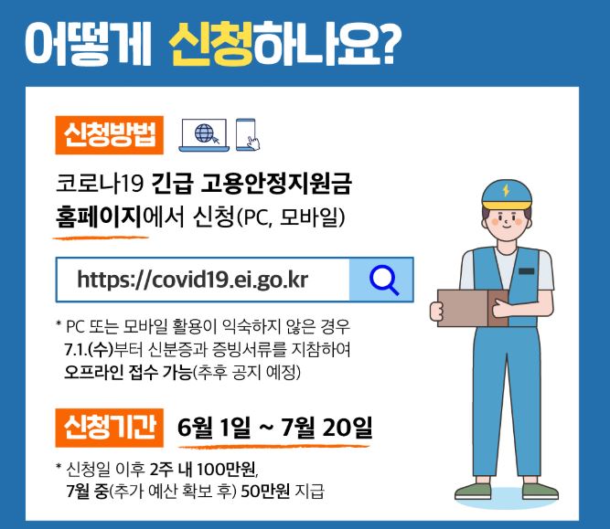 코로나 19로 인한 긴급 고용안정 지원금 신청하는 방법!